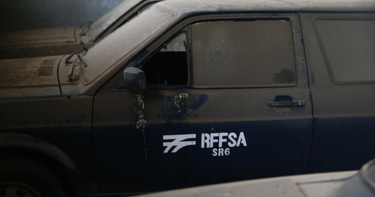 Antigos veículos da SR-6 da RFFSA abandonados em um galpão.